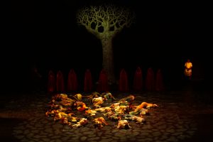 Está puesta en escena de la Comisión de la Verdad de Colombia, cocreada y codirigida por Nube Sandoval y Bernardo Rey, es un relato simbólico del conflicto armado interno creado de manera colectiva en distintos territorios del país. La mayoría de sus protagonistas no son actores profesionales. Son artistas comunidades y colectivos que han vivido en carne propia las violencias injusticias del conflicto y que a través del arte y sus tradiciones sean resistido a él.