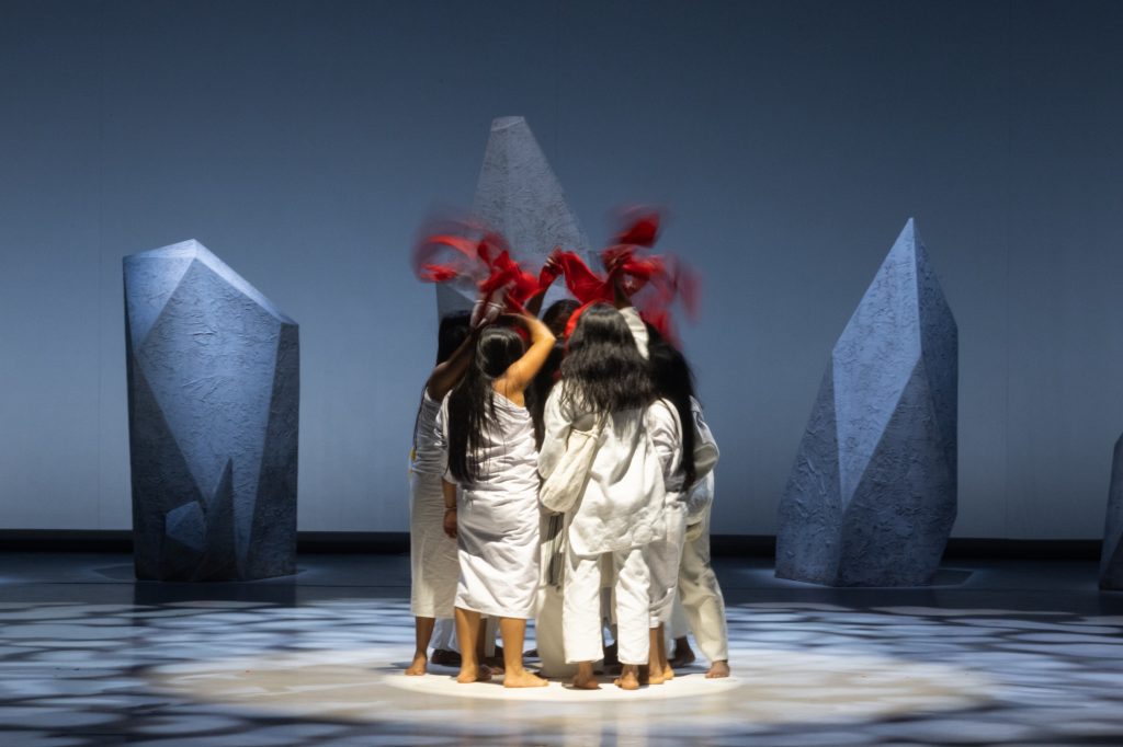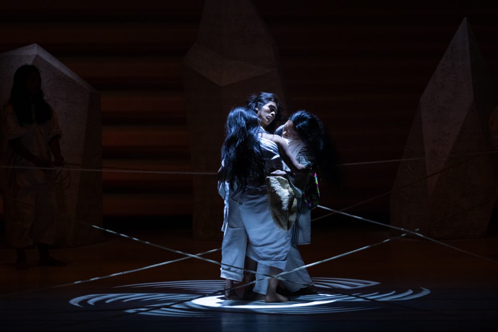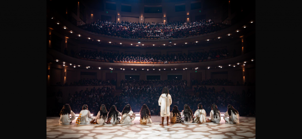 Por un lado el pueblo Kogui y su misión cosmogónica de armonizar y cuidar el planeta y por otro lado el teatro, que en su rol de puente, integra los lenguajes contemporáneos de las artes escénicas para comunicar el llamado a la salvaguardia de la biodiversidad.