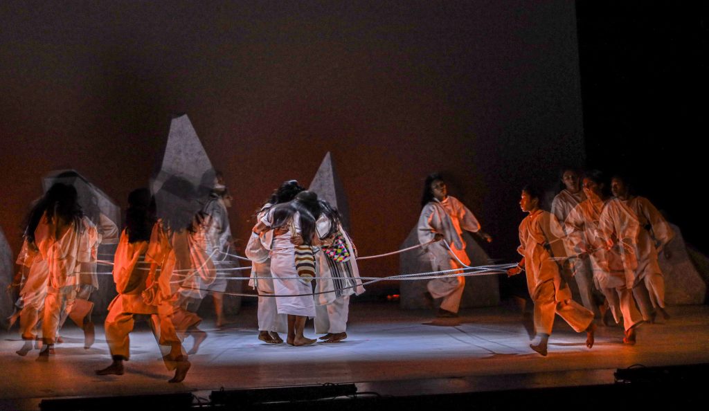 La obra hablada totalmente en lengua Koguian, con subtítulos en español, cuenta con un elenco conformado por 12 jóvenes performers Kogui y dos mayores, líderes espituales de la comunidad.