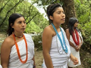 “Toca difundir mas allá para que la gente comprenda la realidad, lo que está ocurriendo en la Sierra, en la naturaleza y en el mundo en general. Los actores están aprendiendo. El proyecto es dirigido en la parte del teatro por Nube y Bernardo y yo lo dirijo en la parte espiritual. El teatro lo veo como un método, una forma como si uno hiciera pagamento, retribuirle a la Tierra, pero entonces pagamento para el cambio de la mentalidad, de la actitud, del espíritu.” Mama Luntana, líder espiritual de Tunguexa