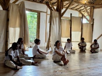 “A mi el teatro me parece importante porque veo que este taller ya se relaciona con nuestra cultura, veo que en el teatro aquí utilizan la máscara como nuestros mayores utilizaban la mascara. Estamos haciendo, manteniendo, conservando la cultura y desde aquí, darle mensaje al mundo o a los hermanos menores para entendernos.¿Y por qué hacemos la danza? Hacemos la danza para conectar o para comunicar con la lluvia, con el agua y con las plantas para que ellos se sientan mejor.” Arregoces Sauna Simungama, actor.